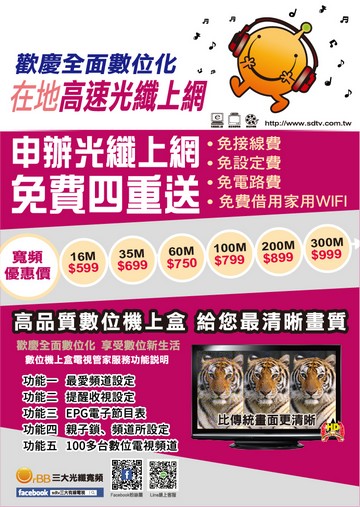 申辦光纖上網,三大有線電視免費四重送 ....... 三大有線電視申裝0979-055003